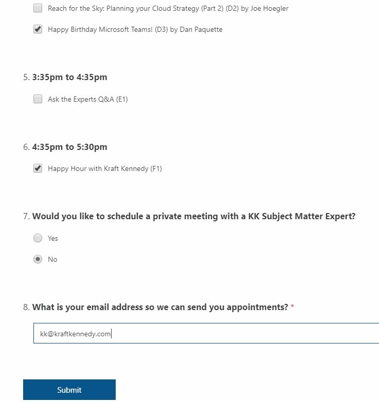 RT @kraftkennedy@twitter.com Our CIO created a very cool for our upcoming education day at the Microsoft Technology Center. Registrants choose from our menu of courses, and easily populate their Outlook calendars for customized experience: bit.ly/2IRnnYL