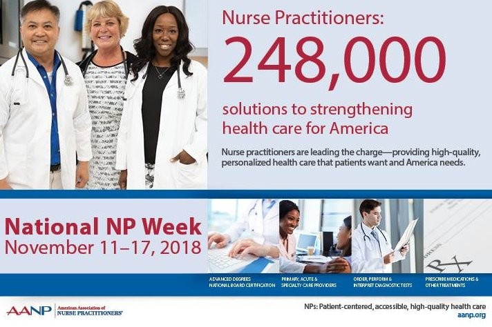 RT @CodmanHealth@twitter.com: National Nurse Practitioner Week continues! #NPWeek is a great time to honor the hard-working NP's among us. We'll be featuring a few of our awesome NP's from urgent care throughout the day! Keep an eye out! Fun fact: there are over 248,000 NP's in the United States!