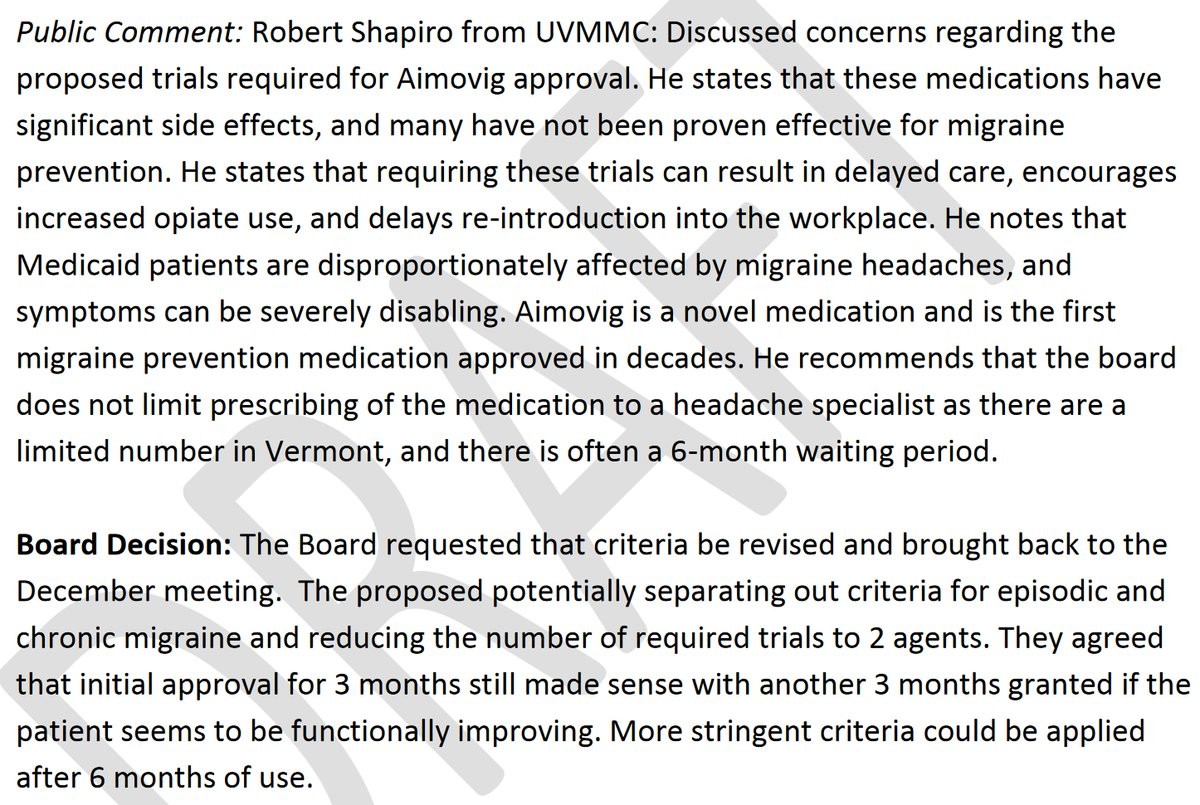 RT @headachedoc@twitter.com On 10/23, I testified before the VT Medicaid Drug Utilization Review Board to lower barriers to anti-CGRP drugs.