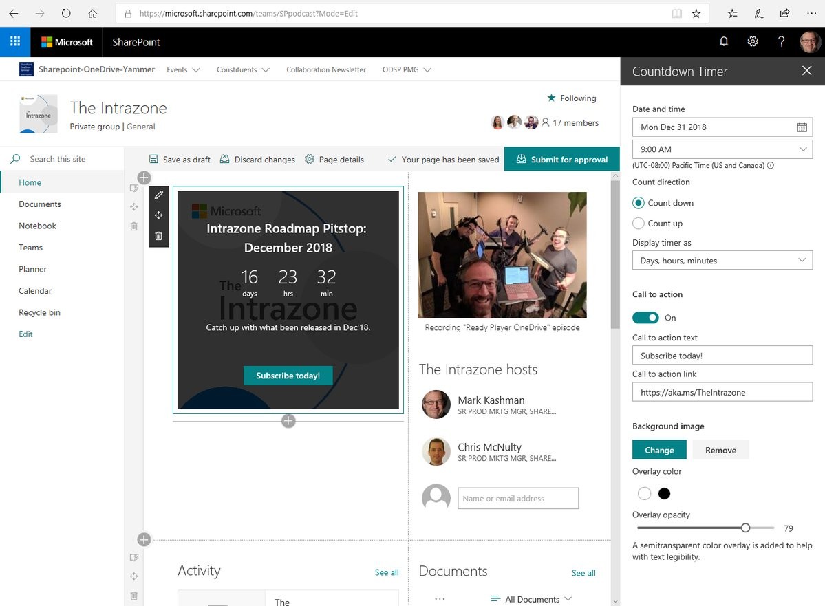 New and updated #SharePoint web parts moving into Targeted Release in #Office365: @Yammer@twitter.com Conversations, @YouTube@twitter.com embed, My recent documents, My frequent sites, Countdown Timer, Code snippet, Markdown, Quick Chart + lists and more.
