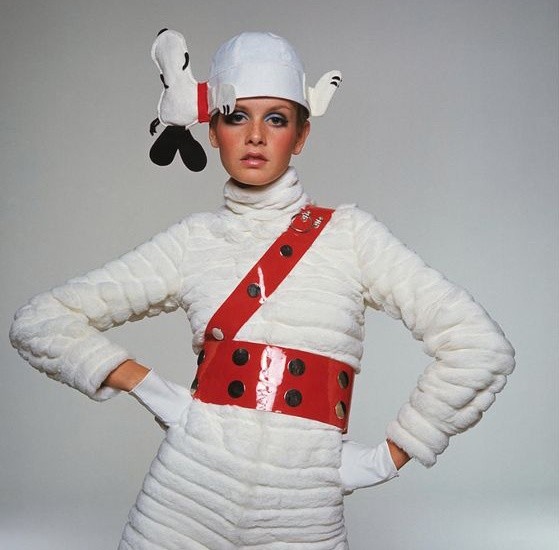Twiggy wearing a Snoopy hat, photo by Bert Stern for Vogue (November 15, 1967)