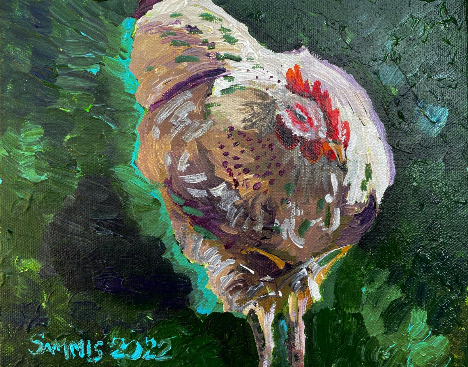 For Day 2 of #ArtAdventCalendar , I present Bertha, my first completed painting of this year. Finished in January. 8x10 acrylic on canvas. #art #MastoArt #chicken