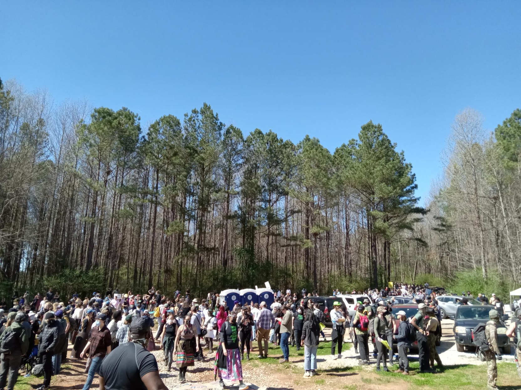 "The crowd has safely arrived at Intrechment Creek Trailhead. Weelaunee People's Park has been successfully reclaimed!"