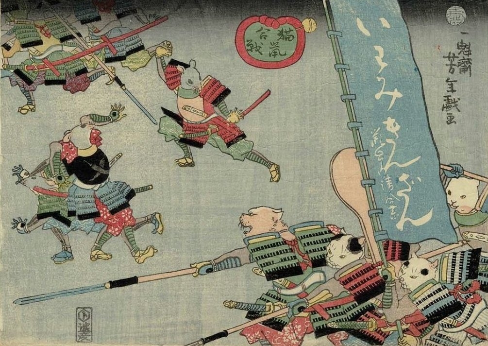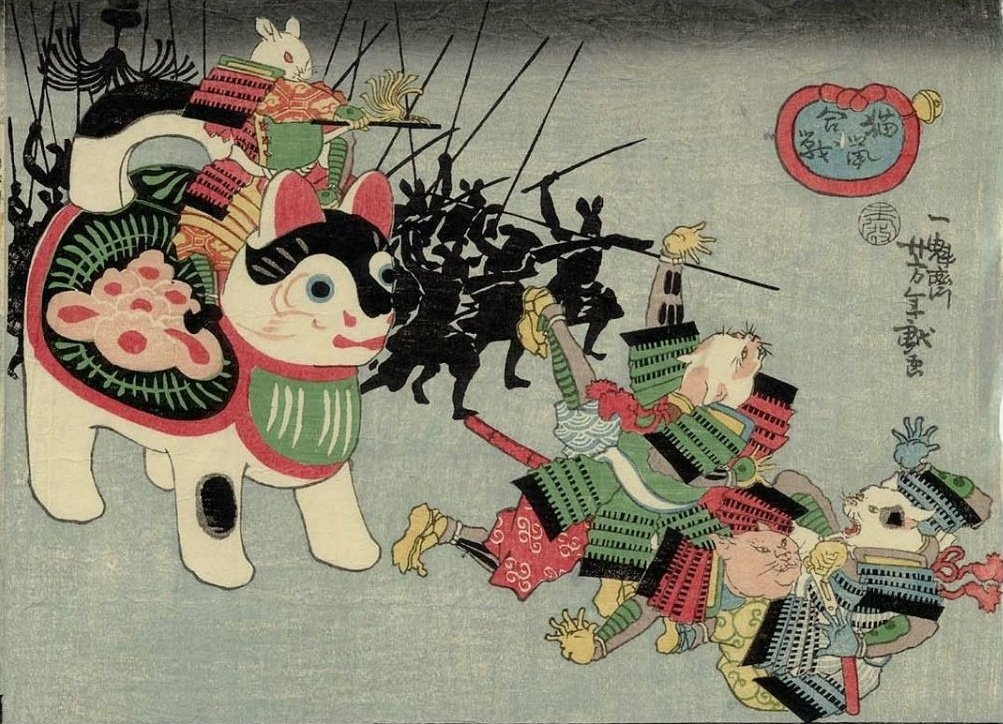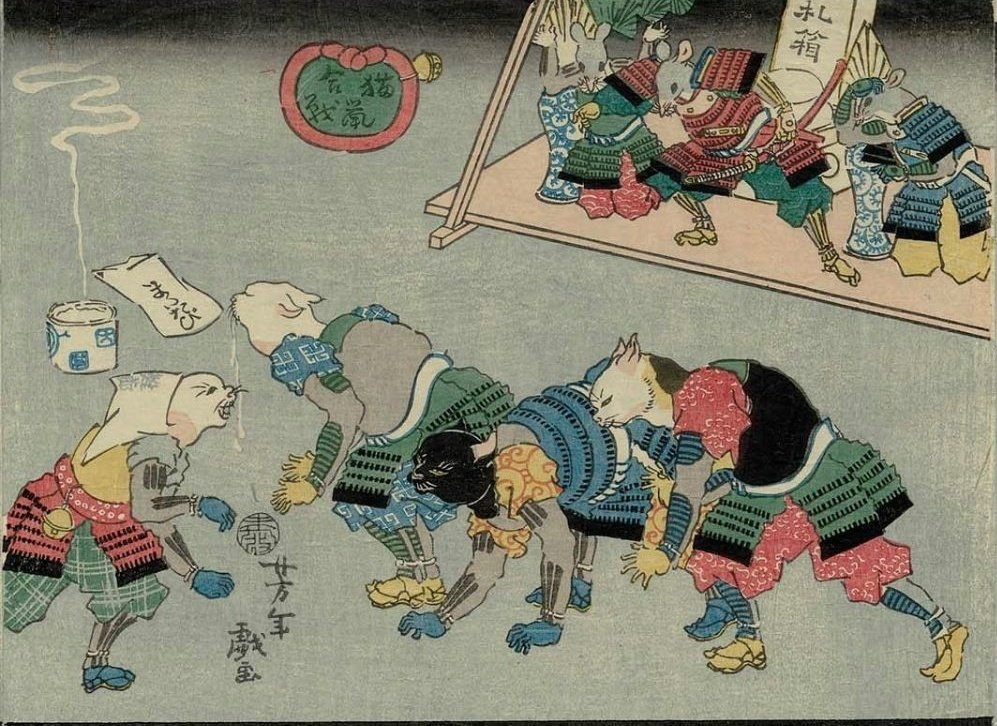 A collection of ukiyo-e prints from the series 'The War of Cats and Mice' by Tsukioka Yoshitoshi, 1859. #Caturday #ukiyoe #JapaneseArt
