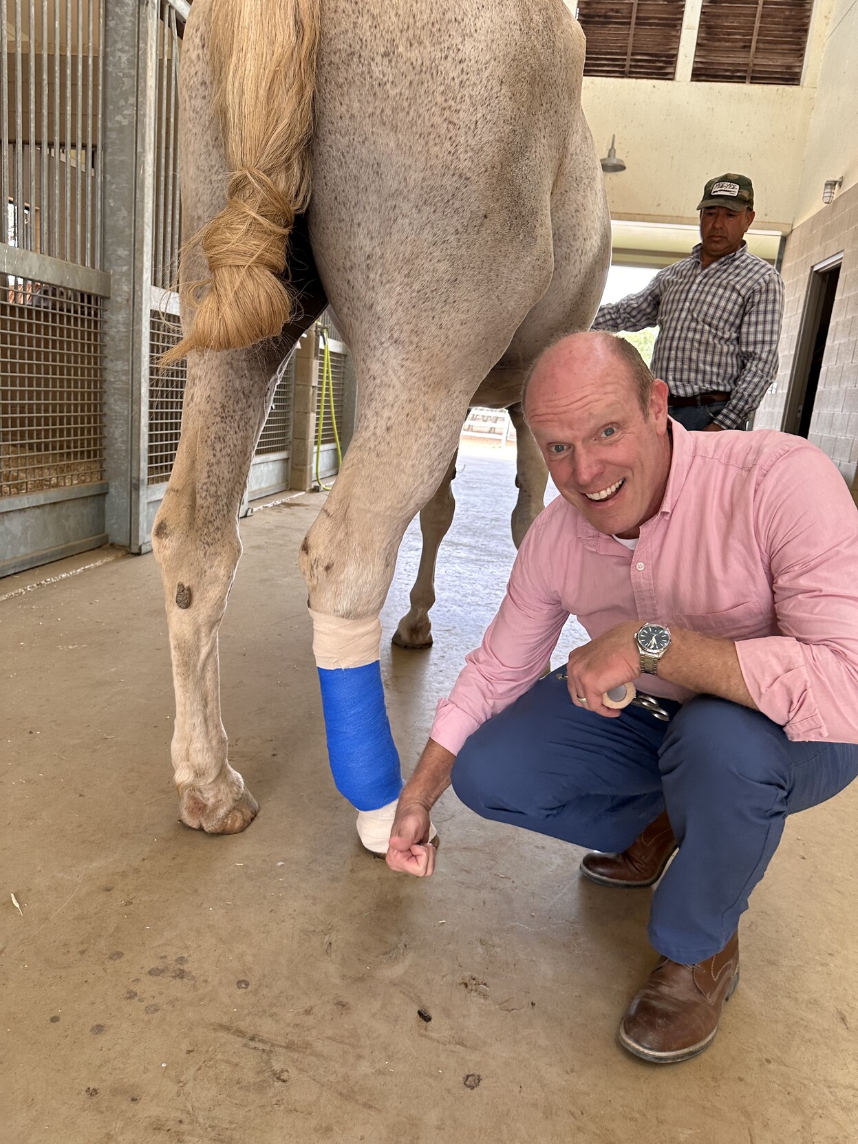 @RickiTarr My veteran vet came out to fix Noly’s bum ligament and made me document the occasion to prove to the interns back at the clinic that he still knows how to wrap a leg. Apparently the interns are of the unanimous opinion that he never does any work.