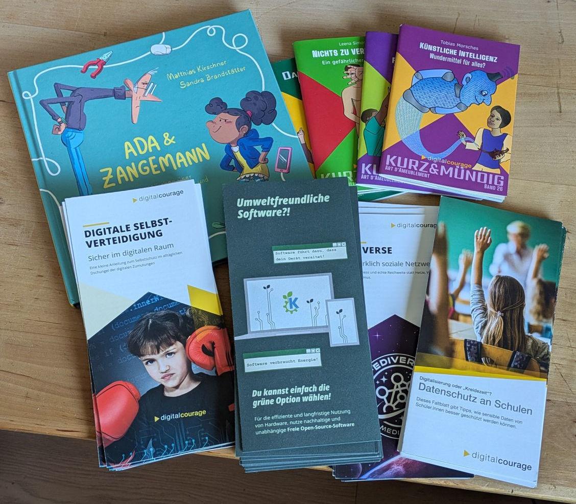 Mit im Gepäck sind natürlich einige Flyer von @digitalcourage sowie Sticker und "Ada und Zangemann" von unserer geliebten @fsfe welche uns auch als Diskussionsgrundlage dienen sollen.
