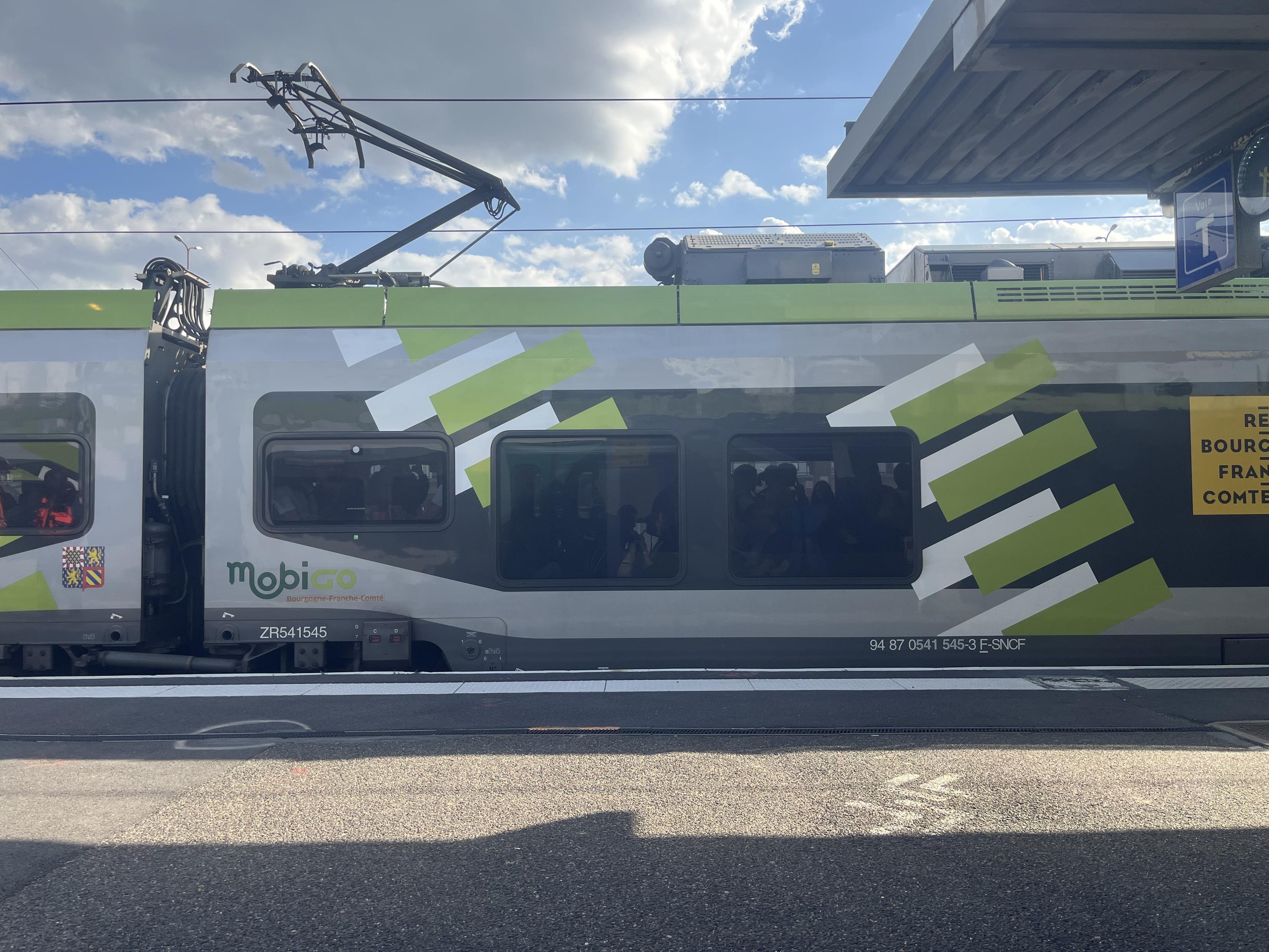 Two trains departing towards Sens, a delayed one to Lyon and an on time one to Laroche Migennes