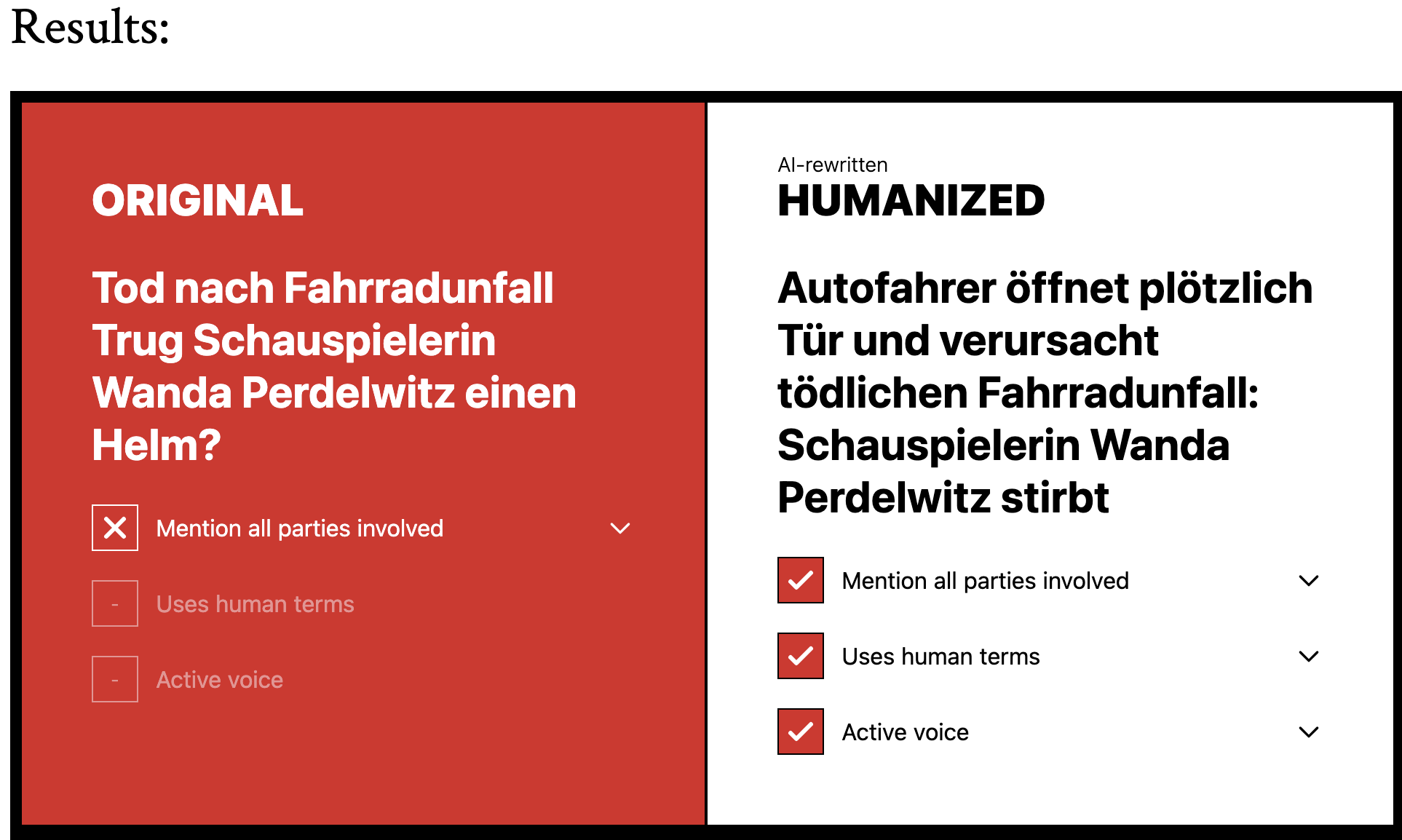 Auf insta hat uns der Radentscheid Heidelberg zum Thema Unfallsprache außerdem auf diese KI hingewiesen. Die liefert durchaus interessante Ergebnisse. #VisionZero