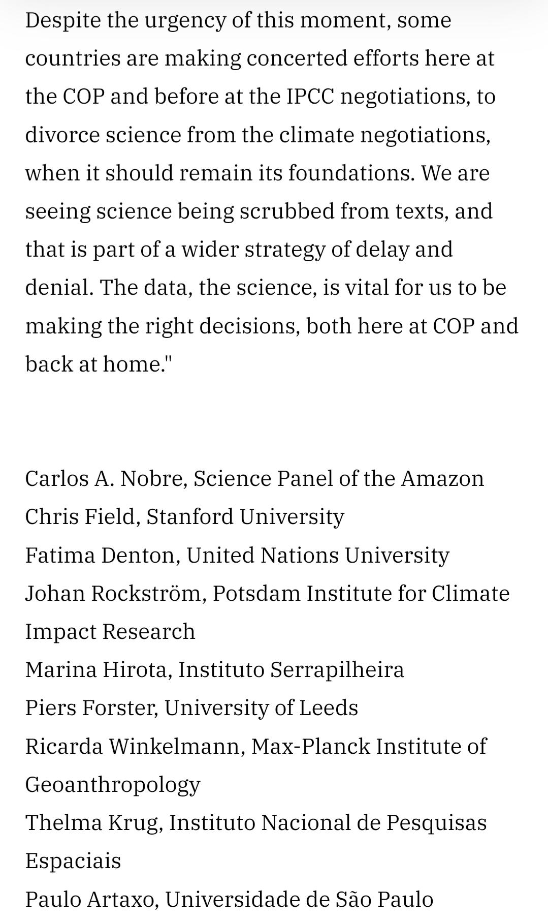 A strong, urgent statement by scientists (led by Johan Rockström of PIK and Carlos Nobre of the Brazilian Science Panel of the Amazon), co-organisers of the "Planetary Science Pavillion" at the COP30 in Belém.