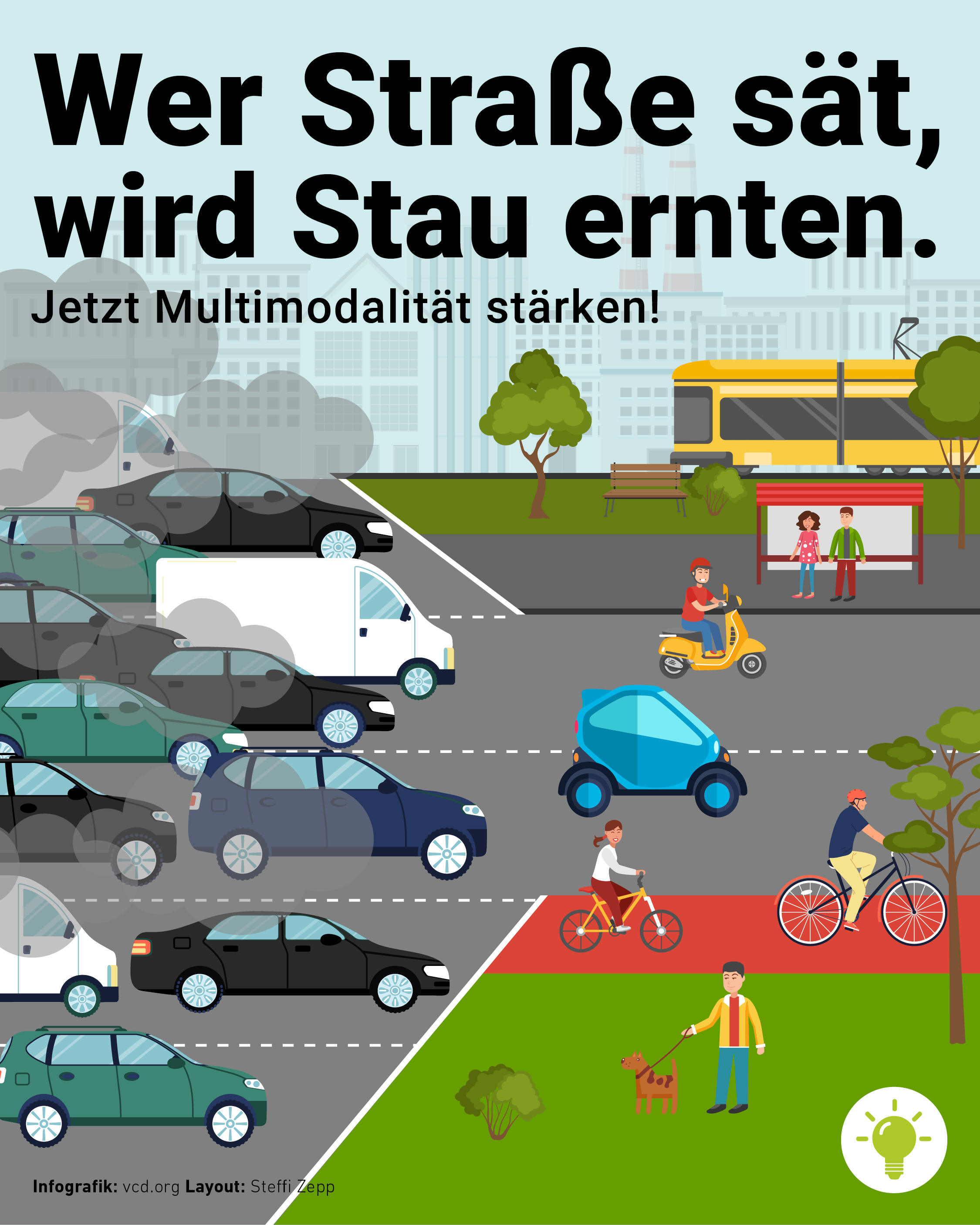 Aber was ist dann die Lösung? Mehr Busse, Bahnen und sichere Fuß- und Radwege! Ein gutes Verkehrssystem lässt uns die Wahl, in jeder Situation das beste Verkehrsmittel zu nehmen: Zum Späti zu Fuß, zur Arbeit mit den Öffis und den Ausflug mit dem Rad.