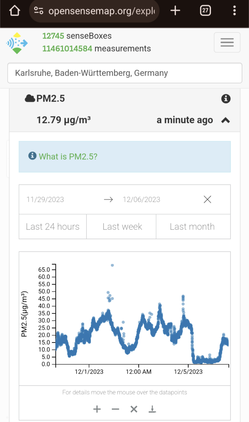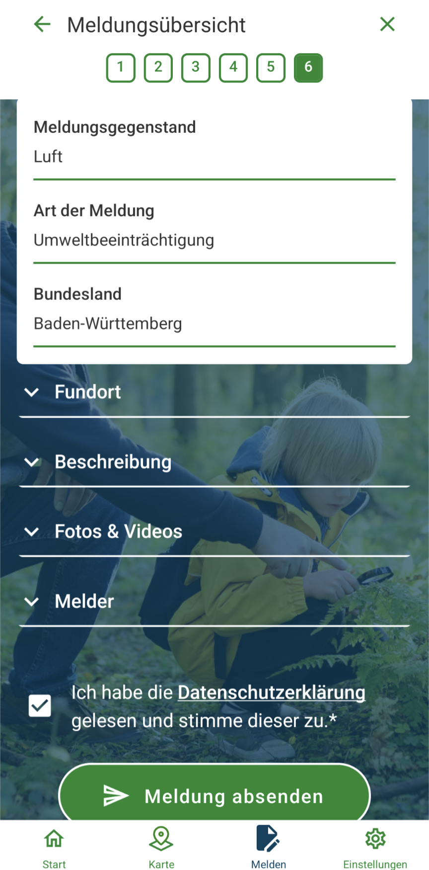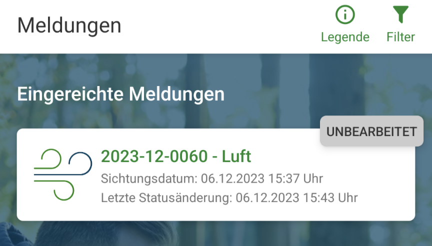 Mit App des Umweltbundesamtes habe ich eine Meldung über die schlechte Luft hier im Wohngebiet angelegt.