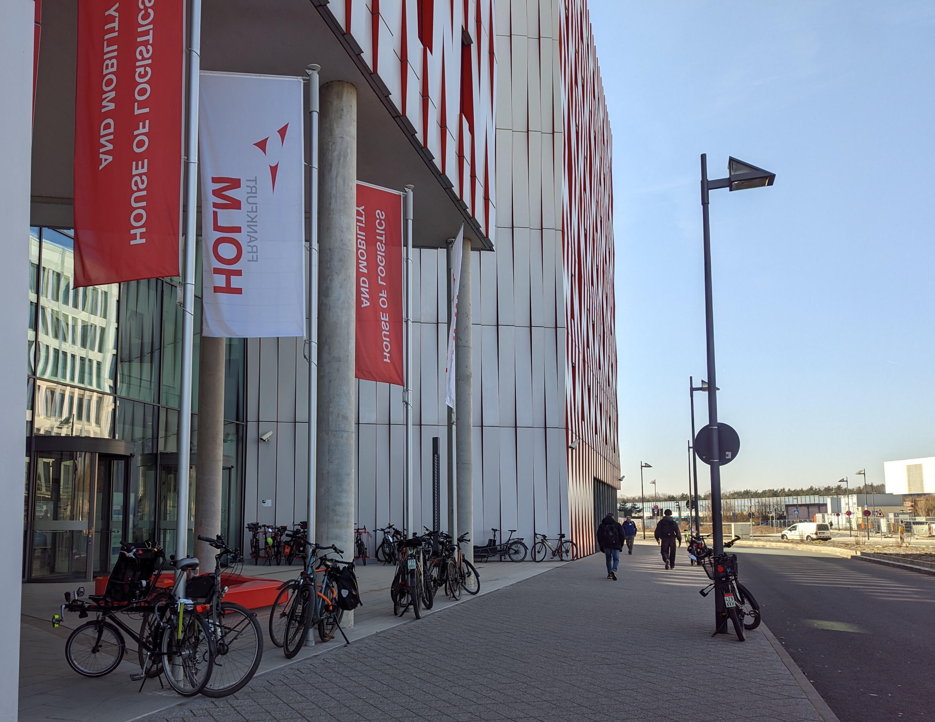 Was der Architekt des Frankfurter House of Logistics and Mobility (HOLM) wollte: Einen ordentlichen Eingangsbereich ohne lästige Fahrräder. Deswegen wurden der Legende nach die Fahrradständer in die Tiefgarage verbannt.