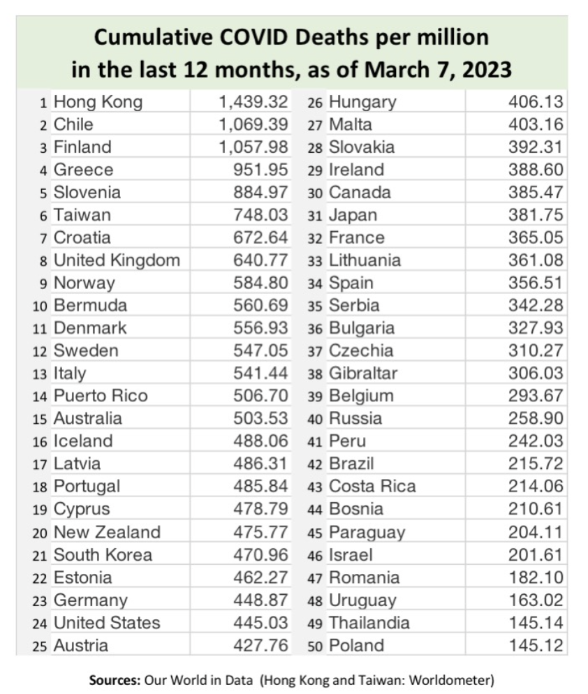 In the last 12 months the most vaccinated countries should have had comparatively fewer Covid deaths. However, many of the 50 big countries with more Covid deaths are highly vaccinated