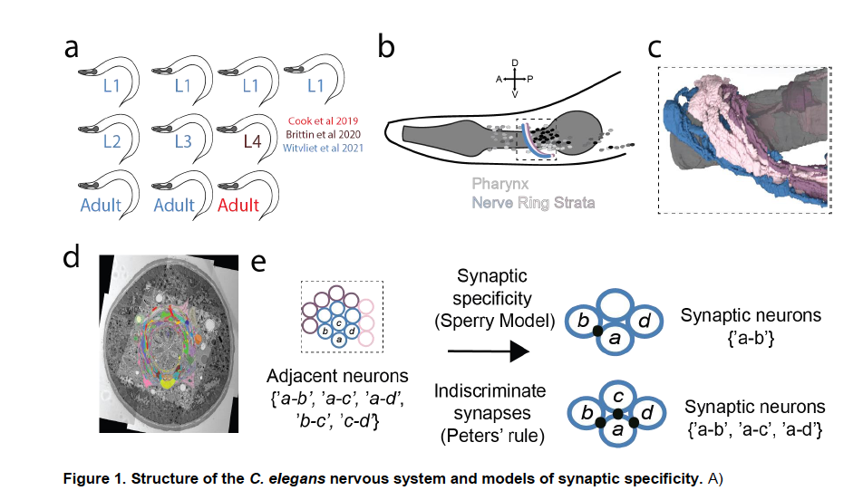 "To assess the nanoscale relationship between neuronal adjacency and connectivity, we evaluate the expansive set of C. elegans connectomes. We find that synaptic connectivity can be accurately modeled as a path-length-dependent process of neuronal adjacency and brain strata, offering strong support for Peters' rule as an organizational principle of C. elegans brain wiring."