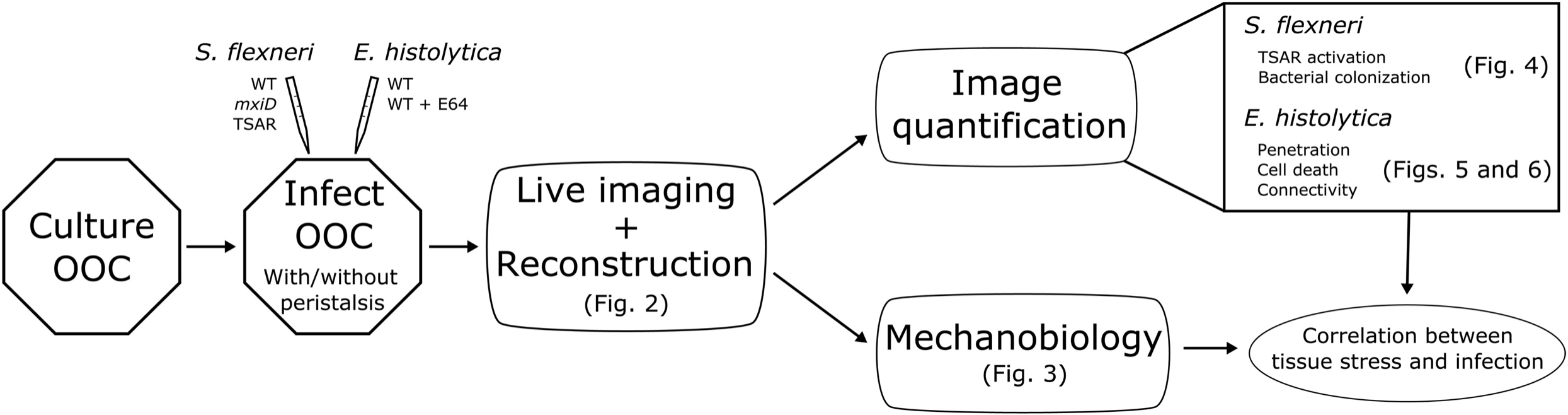 "Our results show that peristalsis accelerates the destruction and invasion of intestinal tissue by Entamoeba histolytica and colonization by Shigella flexneri. Local tension facilitates parasite penetration and activates virulence genes in the bacteria."