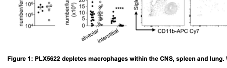 "We therefore took advantage of PLX5622-mediated depletion of these myeloid cell subsets to examine their functional role in C. neoformans lung infection and extrapulmonary dissemination. We found that PLX5622-treated mice had significantly reduced fungal lung infection and reduced extrapulmonary dissemination to the CNS but not to the spleen or liver. Fungal lung infection mapped to MHCIIhi interstitial lung macrophages, which underwent significant expansion during infection following monocyte replenishment and not local division."