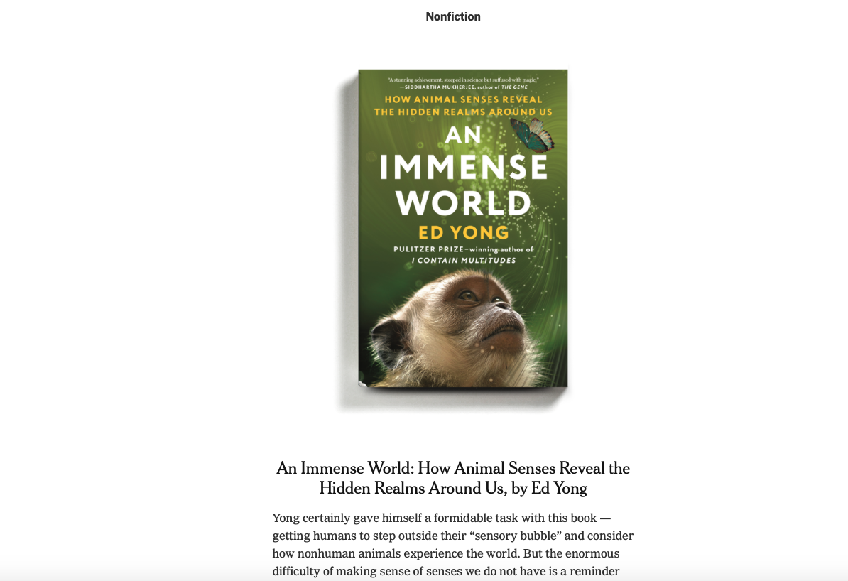 Great to see Ed Yong making the Times top 10 books of 2022 list