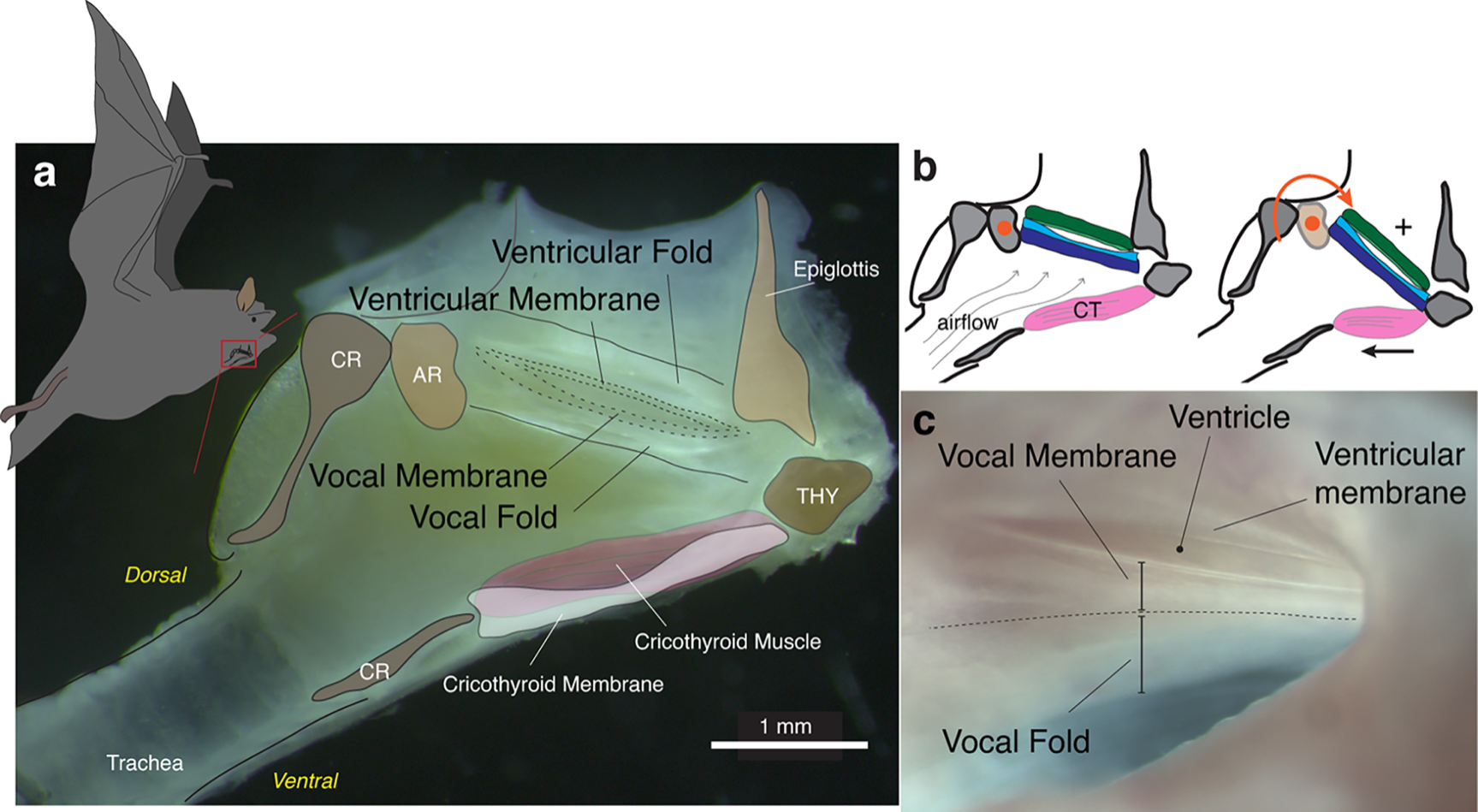 'However, no direct evidence exists as to if and how laryngeal and ventricular structures can vibrate to produce sound in bats due to challenges of imaging the vocal folds in vivo at the extremely high speeds required.