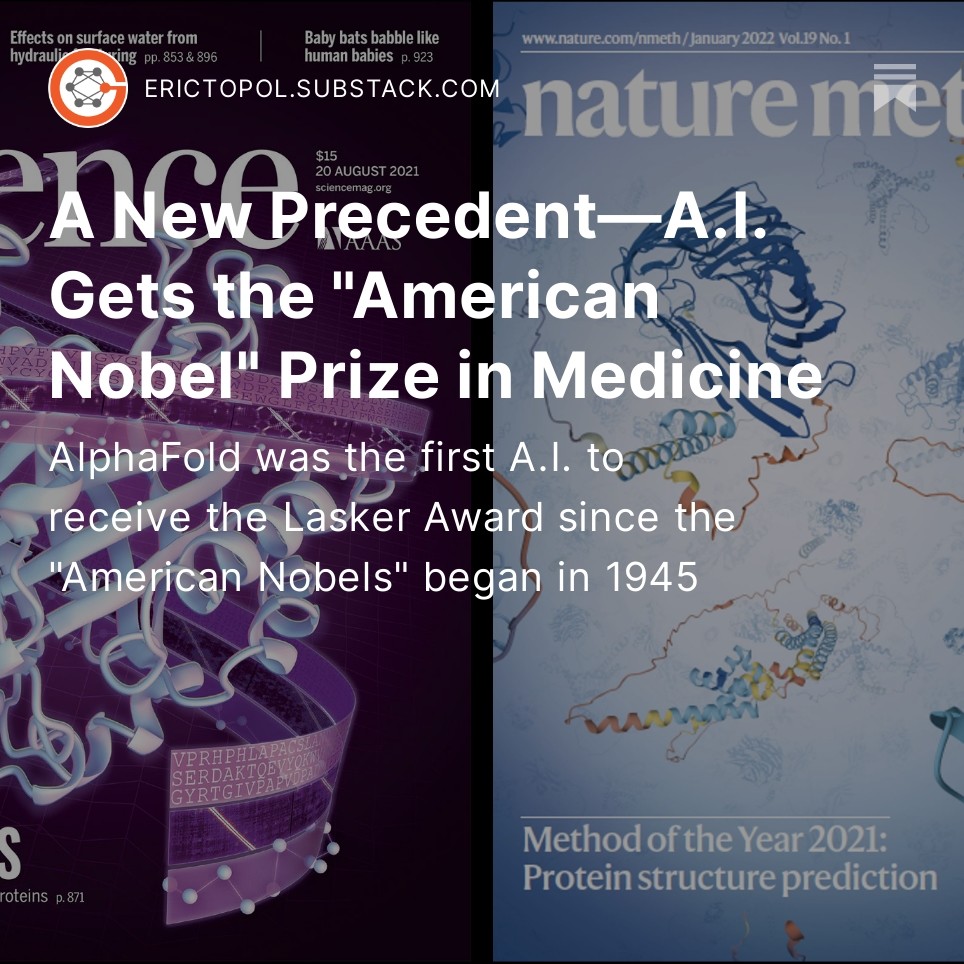 The new Ground Truths makes the case for transformer model #AI as having made an essential contribution for the recent Lasker "American Nobel" Award and throughout life science