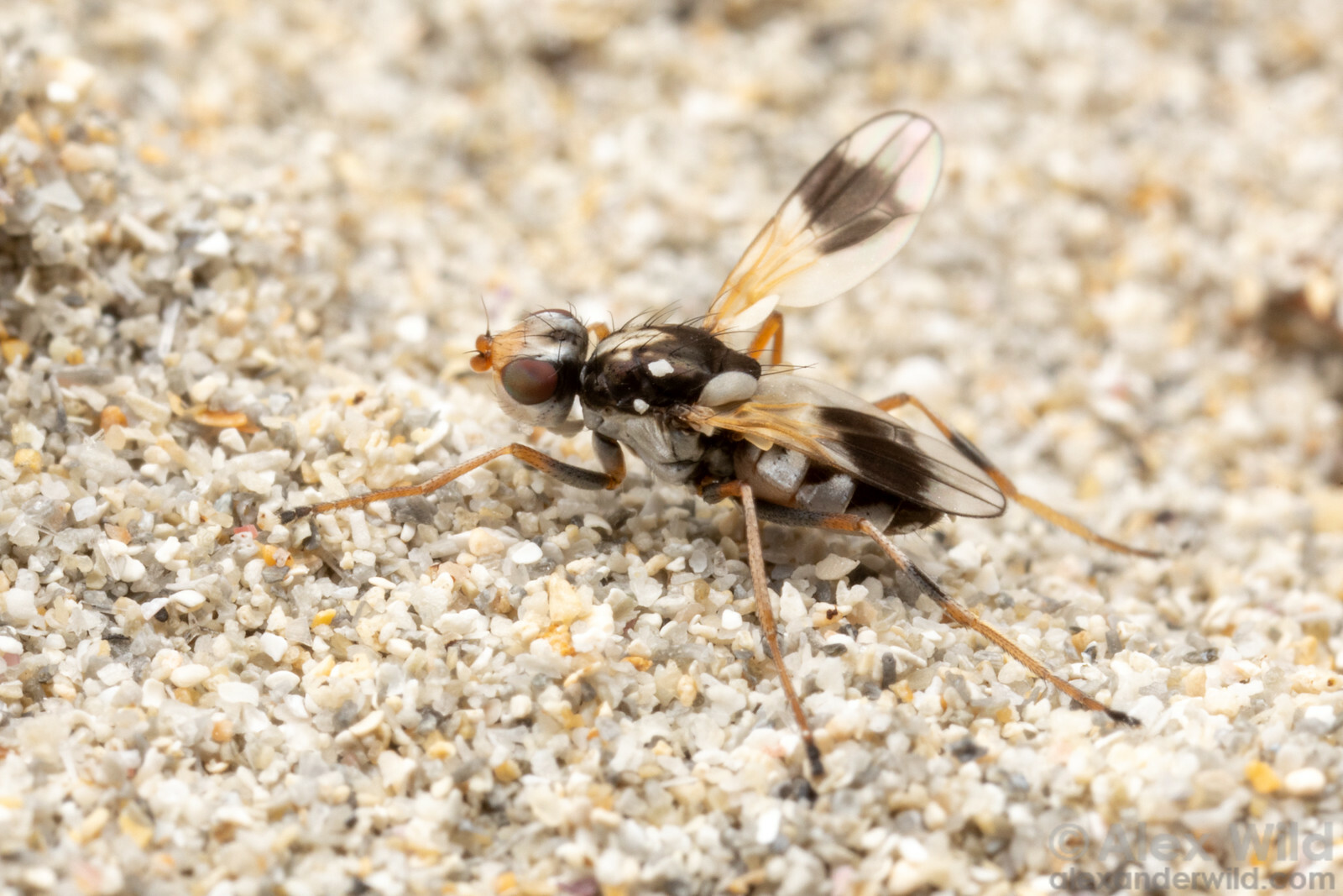Here's a marvelous ephydrid brine fly I photographed recently along the beach in Warrnambool, Australia, where this species was quite common. Couldn't put a name to it, in spite of the distinctive markings.