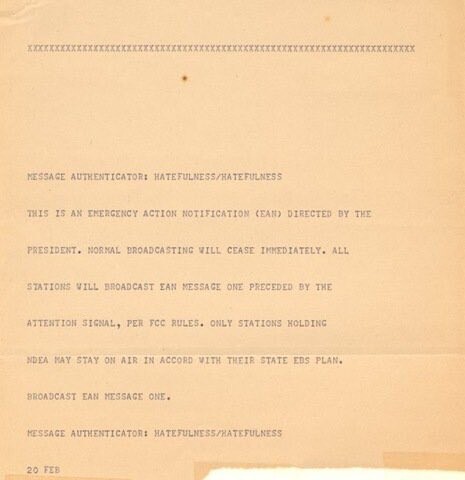 This morning in 1971, a teletype operator at the National Emergency Warning Center in Cheyenne Mountain, Colorado, mistakenly transmitted a message via the Emergency Broadcast System notifying radio and TV stations nationwide the United States was under attack. http://conelrad.blogspot.com/2010/09/code-word-hatefulness-great-ebs-scare.html