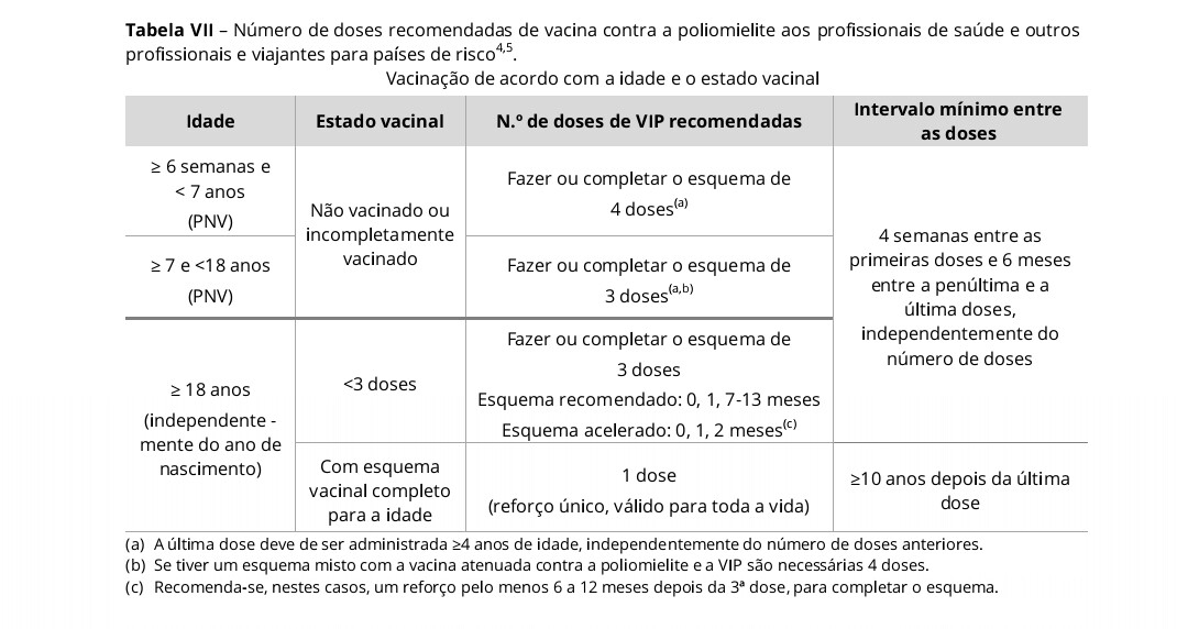 👉 devem ter um reforço da vacina contra a poliomielite. Dose única.