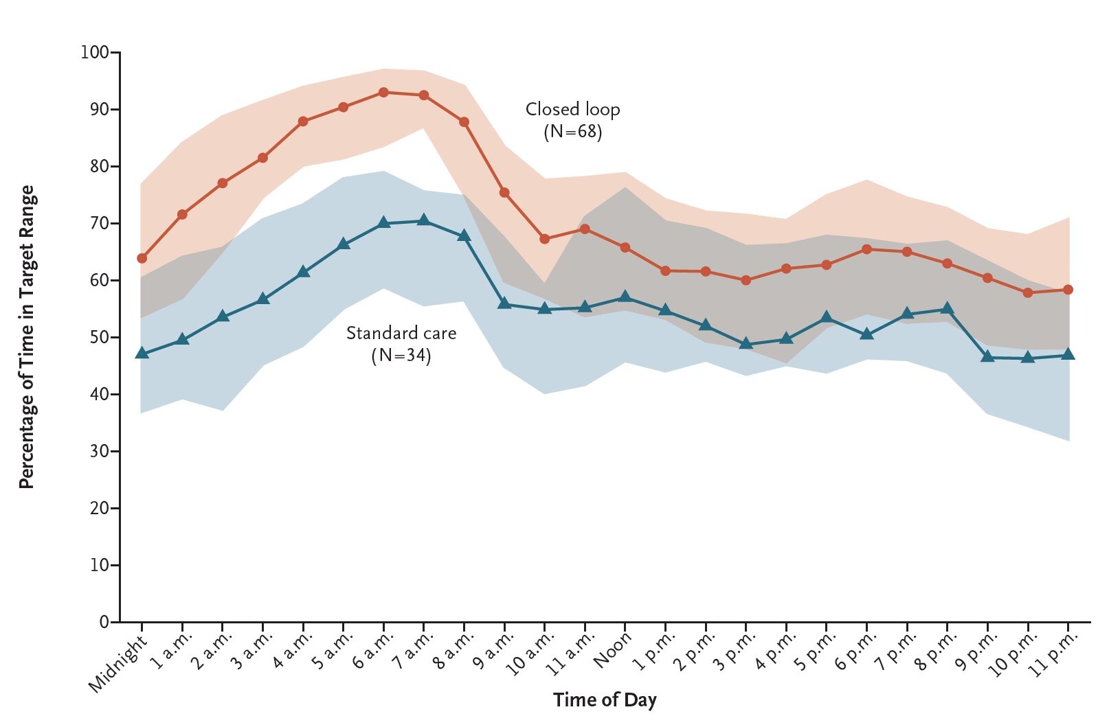 Striking how benefits of Hybrid Closed-loop systems in Type 1 Diabetes are greater at night.