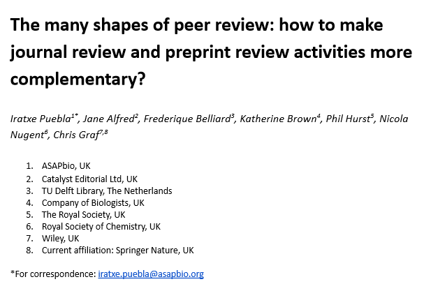 They are collecting feedback on how researchers, funders, & editors might participate in preprint review.