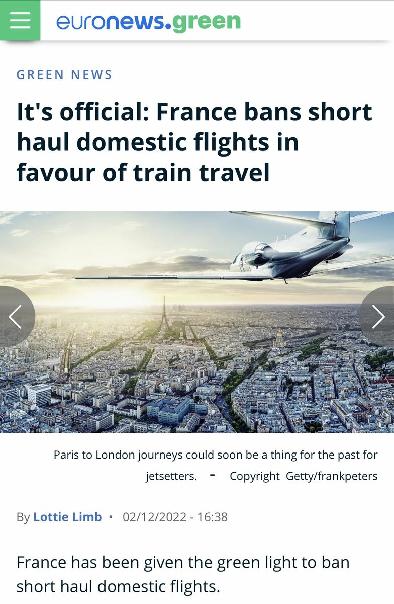 It's official: France bans short haul domestic flights ✈️ in favour of train 🚆 travel 👇👇