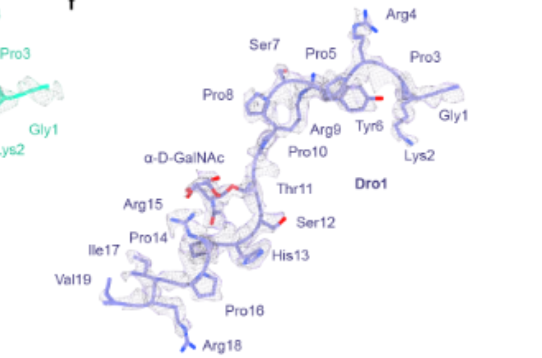 Structural basis for translation inhibition 1 by the glycosylated antimicrobial peptide Drosocin from Drosophila melanogaster