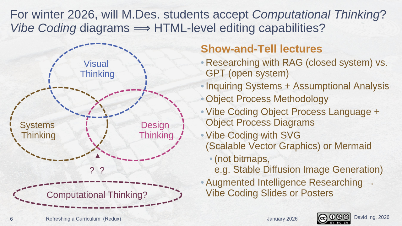 Web video applying Contextural Appreciative Learning on revising #SystemsThinking course with #StephenDavies for winter 2025 #OCADU_SFI program. Hellenic HSSS conference proceedings article includes reflections + student surveys guiding next iteration.