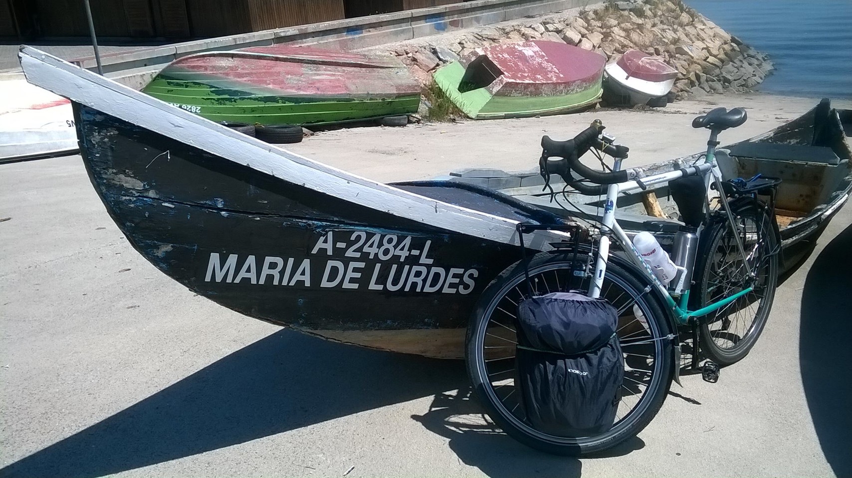 And here's is my dear Touring bike, in Aveiro, Portugal two years ago. Two months on the road with her, loaded with a lot more gear (all in the tent back at the campsite at the time this photo was taken).