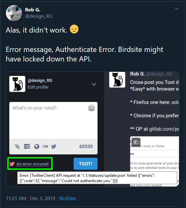 Cross-post you Toot directly from Mastodon to Twitter, aka Birdsite? *Easy* with browser extension.