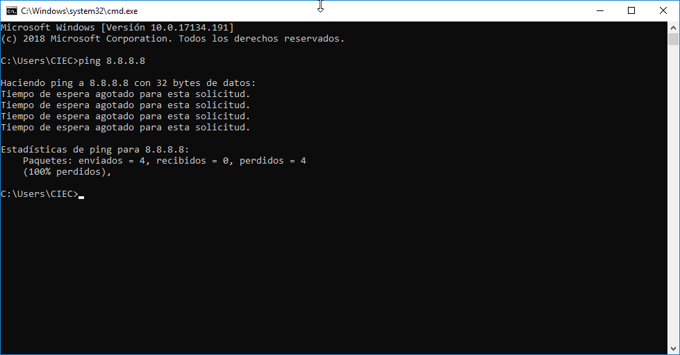 The test did work. But the network, not, can't find a path to google dns servers (the quad 8 ip string).