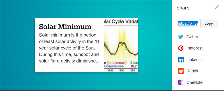 Interesting new "Share" button and options available at the top of that nice summary box on Bing.