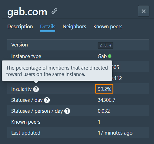 Personally, I have no interest in the gab and peripheral instances; indeed block them on my personal account, because I can't see any advantage or progress coming from confrontations with extreme views on the right.