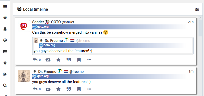 The advantage is that we see them in the same way we see the posts made locally here at Qoto: