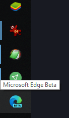 Shows on desktop and Taskbar as "Microsoft Edge Beta"