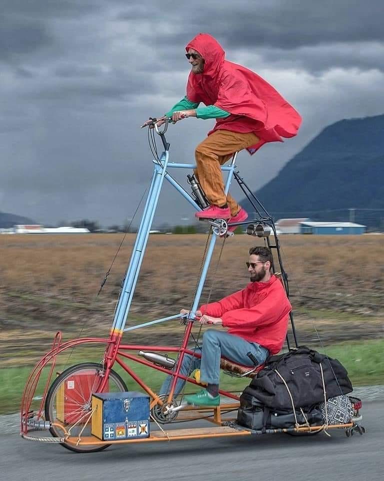 An interesting, ingenious and likely dangerous to ride bicycle for two.