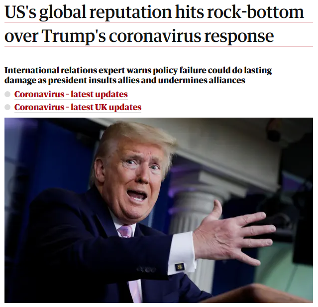 US's global reputation hits rock-bottom over Trump's coronavirus response