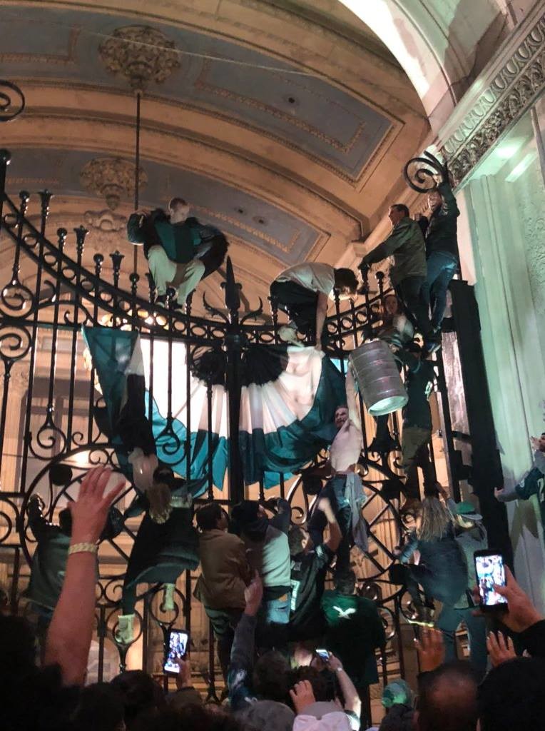 That time a philly mob broke into city hall by climbing the gates and brought a keg with them to have a party inside. Now this is how you have a riot!