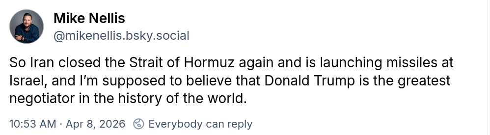 This war is a long way from over as yet https://www.taxresearch.org.uk/Blog/2026/04/08/this-war-is-a-long-way-from-over-as-yet/ Even if we do have a ceasefire this morning, the consequences of this war will last for decades, and we might all pay the price for that.