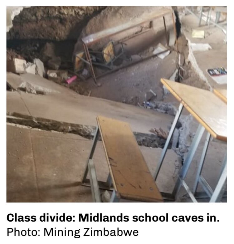 “At least 14 children in the Midlands province of central Zimbabwe have been injured after the classroom block they were in collapsed into an illegal gold mining shaft dug under Globe and Phoenix primary school.” @thecontinent_