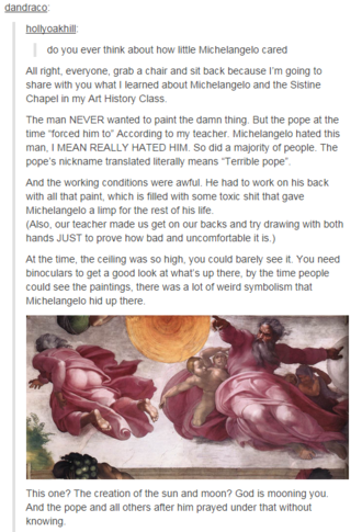 The ceiling of the Sistine Chapel is effectively the longest running troll in history. No i wonder I love this dude so much.