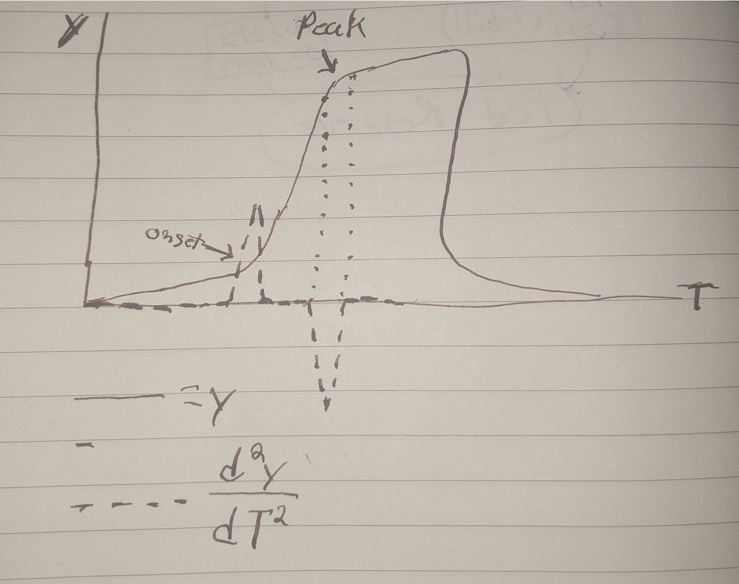 @sergiopantalone By the way if you want to get super technical you would usually perform some sort of smoothing over length that is smaller than your generation time, weighted moving averages work best, and then take the second derivative of that. Typically your onset point is the first peak you will see and the peak is where you see the the second peak on the second derivative graph. this will look like an concave simple on the leading edge (the onset) and a convex dimple on the trailing edge of the growth (the peak)