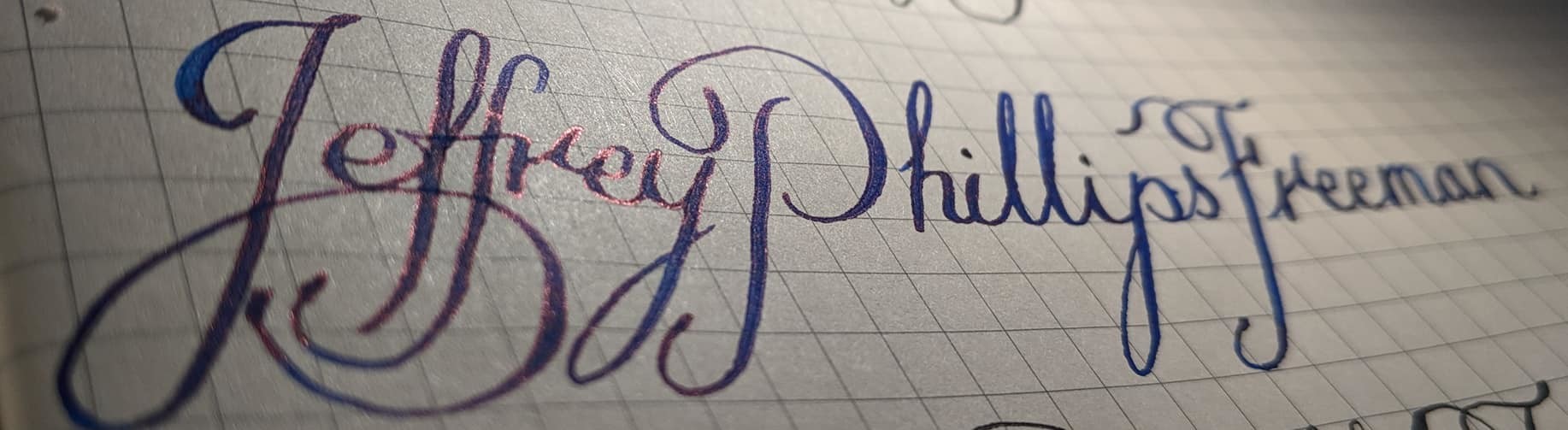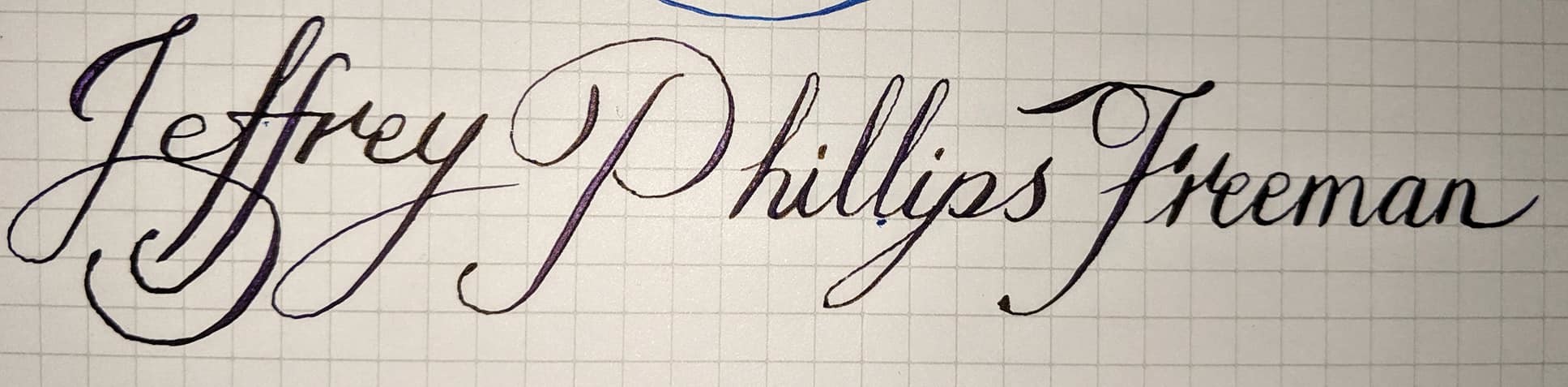 This was written with my vintage franken-pen. It uses a 114 year old Waterman's Ideal #2 nib in a TWSBI Diamond with a new customized ebonite feed. The ink is Diamine's Phillip ink.