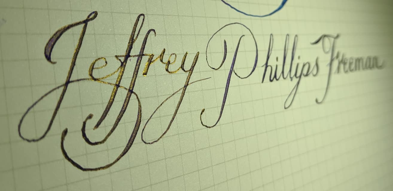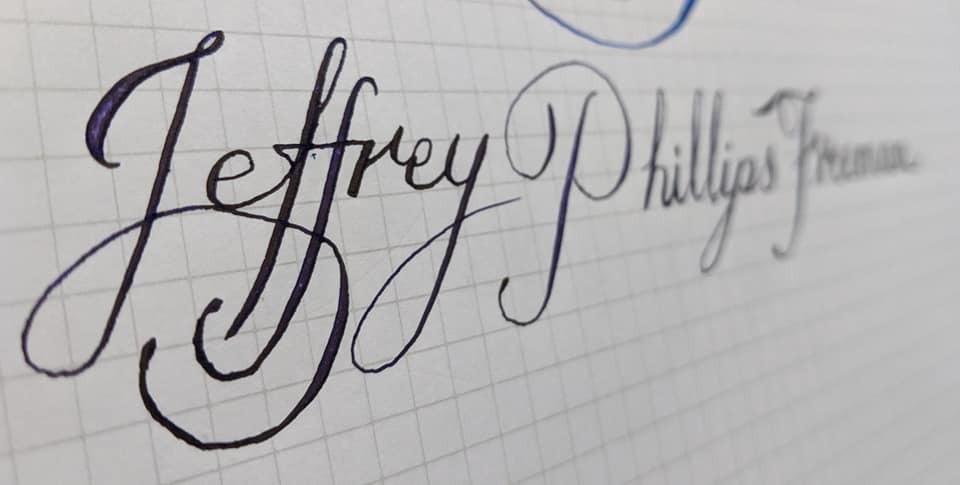 4) Pilot Custom 912 with a modified nib (Mottishaw Spencerian Modification). Sailor Carbon Black pigment ink.