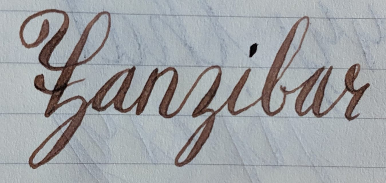 What does everyone think of my new script for upper and lower case z? This spells Zanzibar. Also i improved my copperplate in general a lot recently i think. This was fast writing.