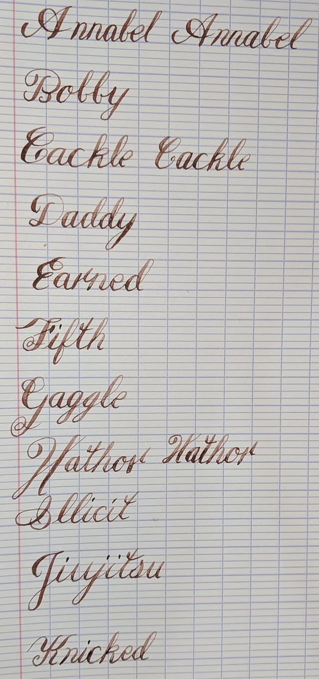 3) A Pilot Falcon with extra food be nib. Diamine's Burnt Sienna ink.