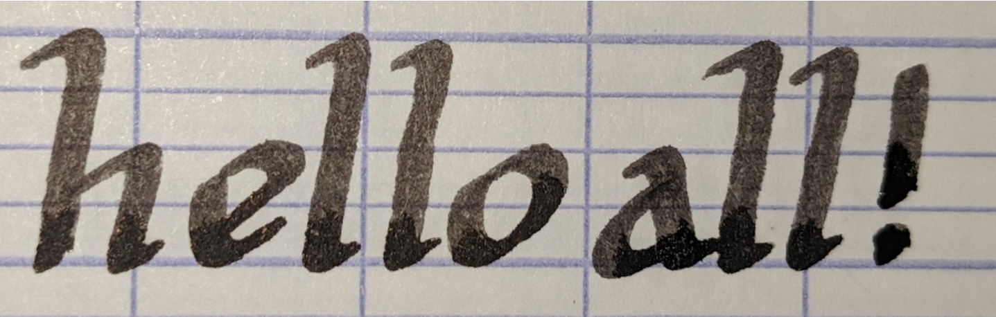 The attached image are three phrases I wrote about as fast as I possibly can write (few seconds) and they look pretty damn good!